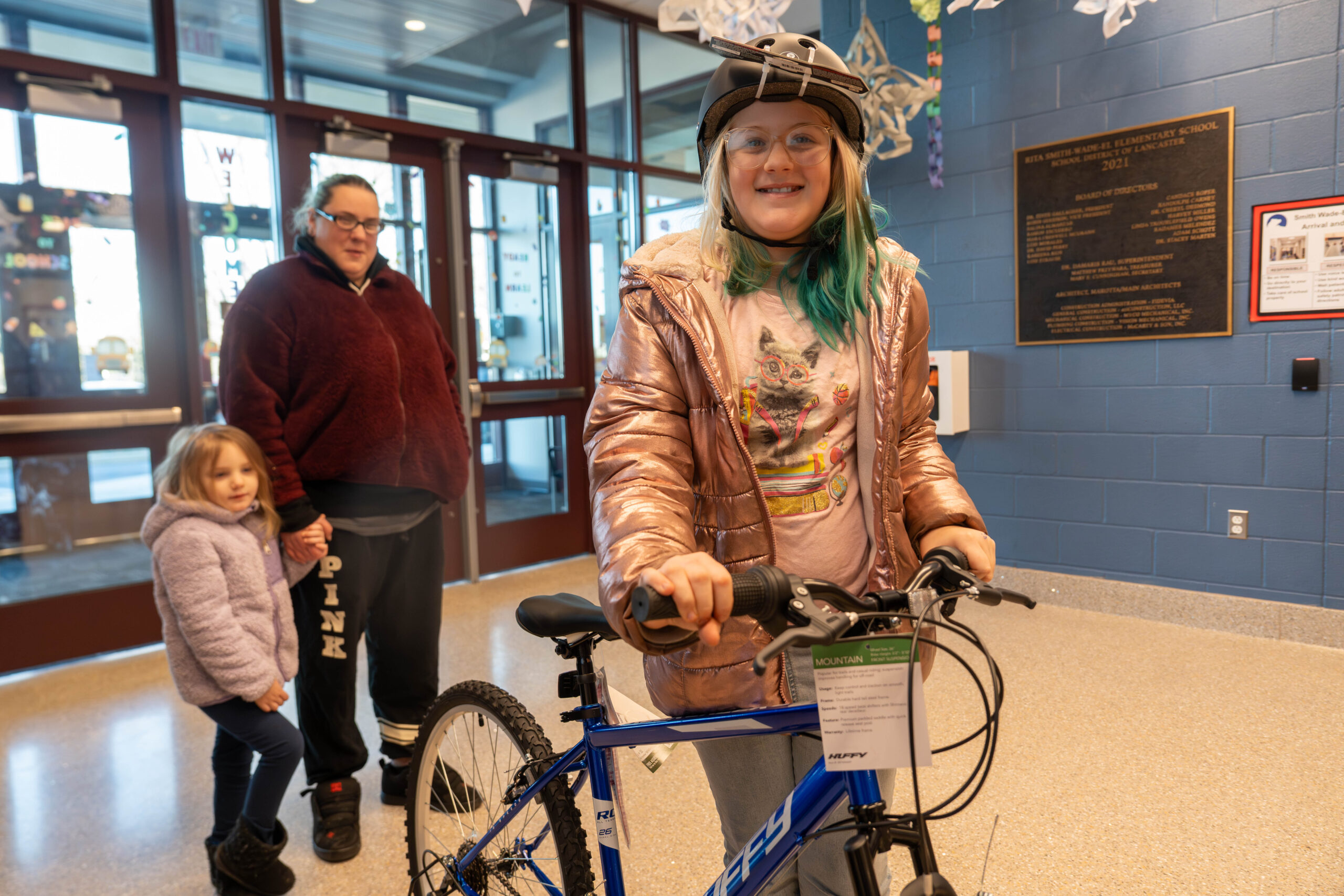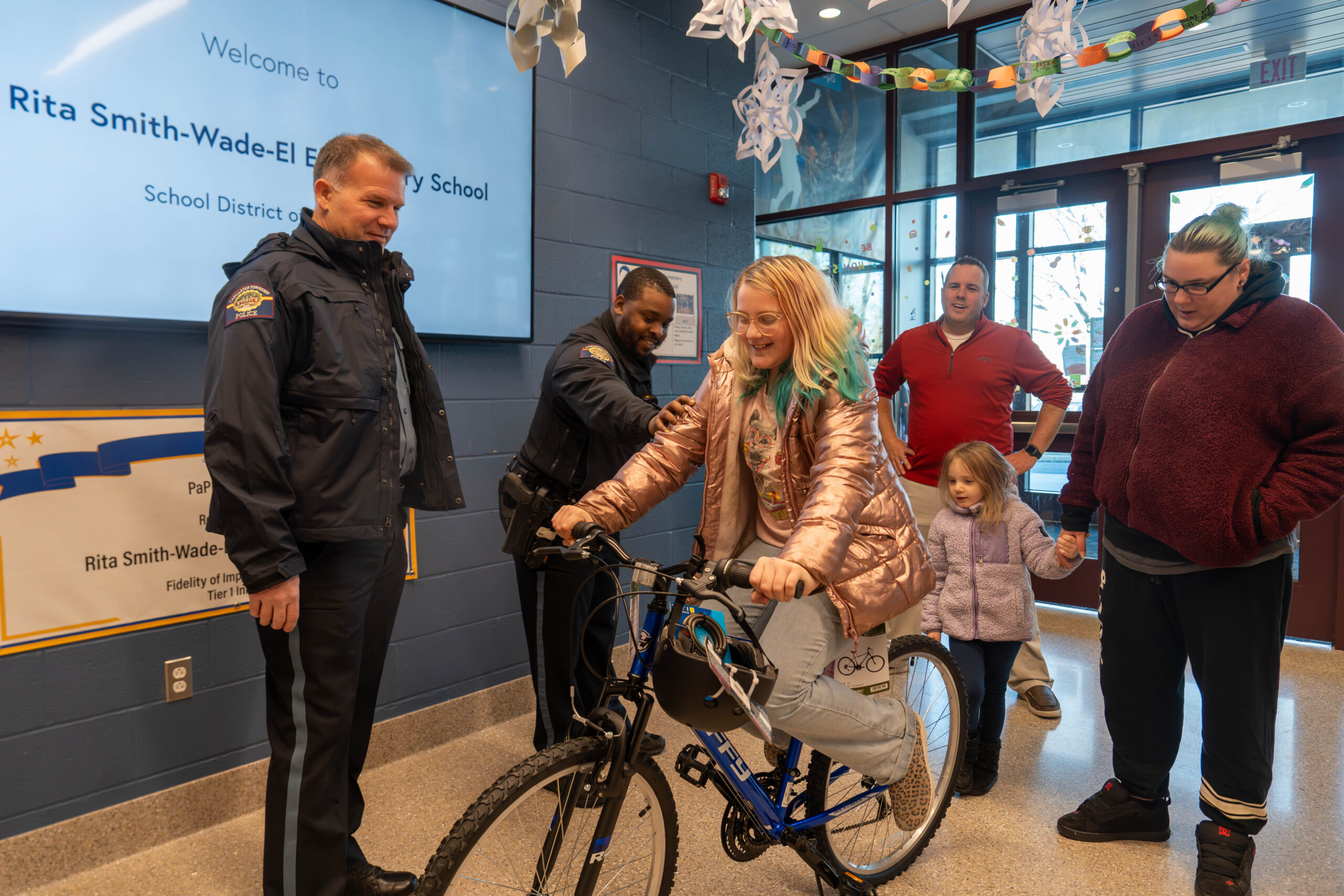 Principal Amy Martz reflected on how the moment aligned with the values Smith-Wade-El works to instill every day. “It’s great to see the Lancaster Township Police Department come together for the sake of our children,” she said. “The fact that this is the first time they are presenting a bicycle to one of our students is amazing. It ties directly into our PBIS expectations of being responsible, respectful, and safe within our community.”