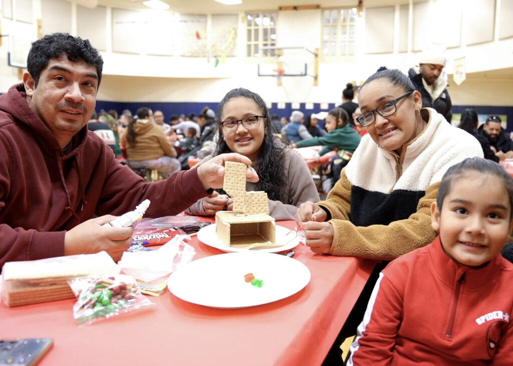 Family engagement is a central priority across the district, and events like this one help strengthen the relationships that support academic growth and emotional well-being. Gingerbread House Day invites families into a familiar space for a purpose that feels joyful and easy to participate in. It allows students to see their caregivers and educators working in the same room in a way that builds connection and comfort. It gives staff a chance to learn more about the families they serve while families gain a deeper sense of the environment their children experience each day.