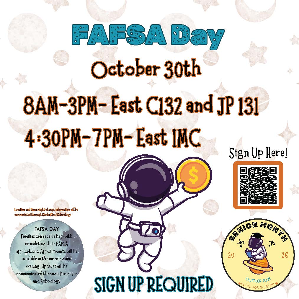 Throughout the day, families can schedule one-on-one help to complete the FAFSA. Morning and afternoon appointments will run at J.P. McCaskey and McCaskey East, with evening support available at East’s IMC. Sign up is required, and any updates will be shared through ParentVUE, StudentVUE, and Schoology.