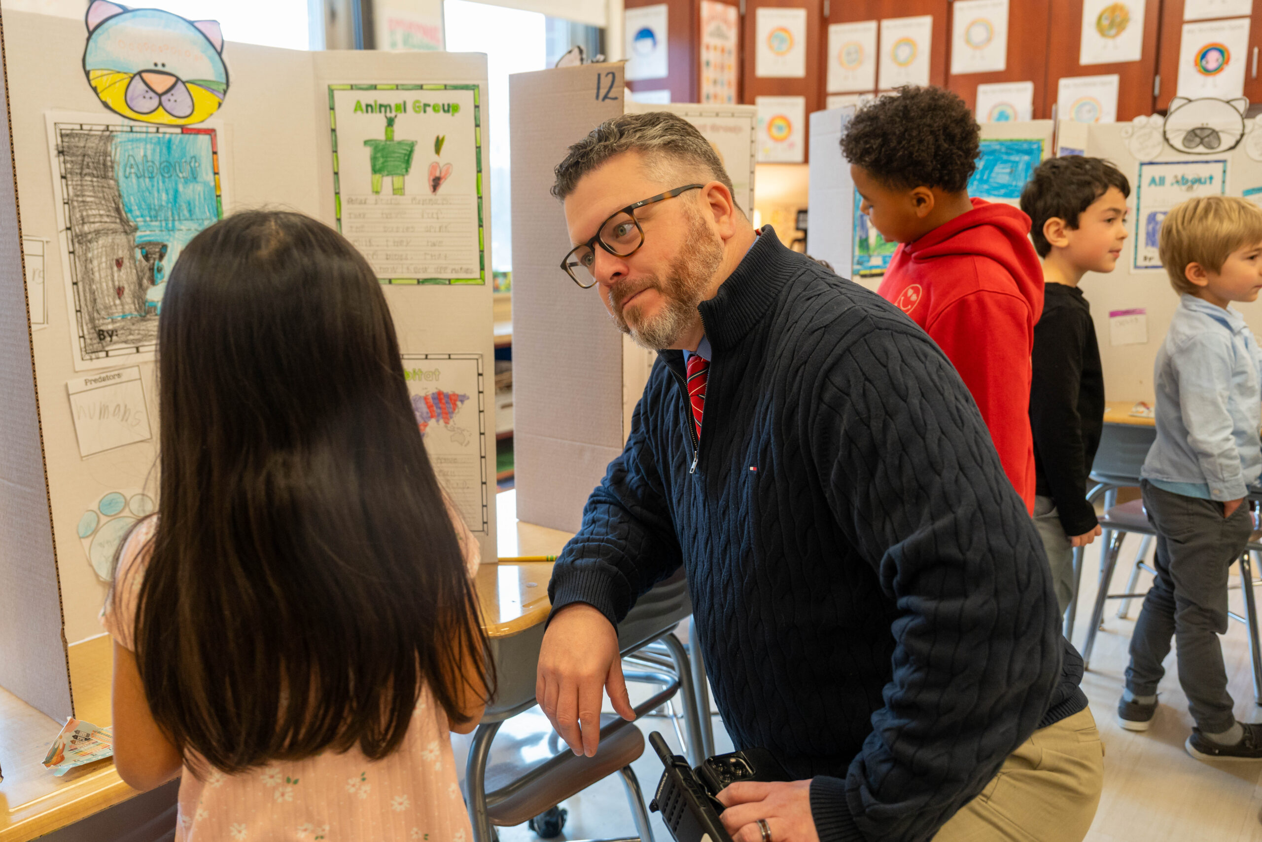 The result was a museum walk that invited the entire school community into the learning process. Administrators, specialists, speech therapists, interventionists, kindergarten teachers, upper-grade classes, siblings, and district staff were all welcomed to tour the displays. As visitors moved through the room, students stood proudly beside their projects, explaining their research and answering questions with confidence.