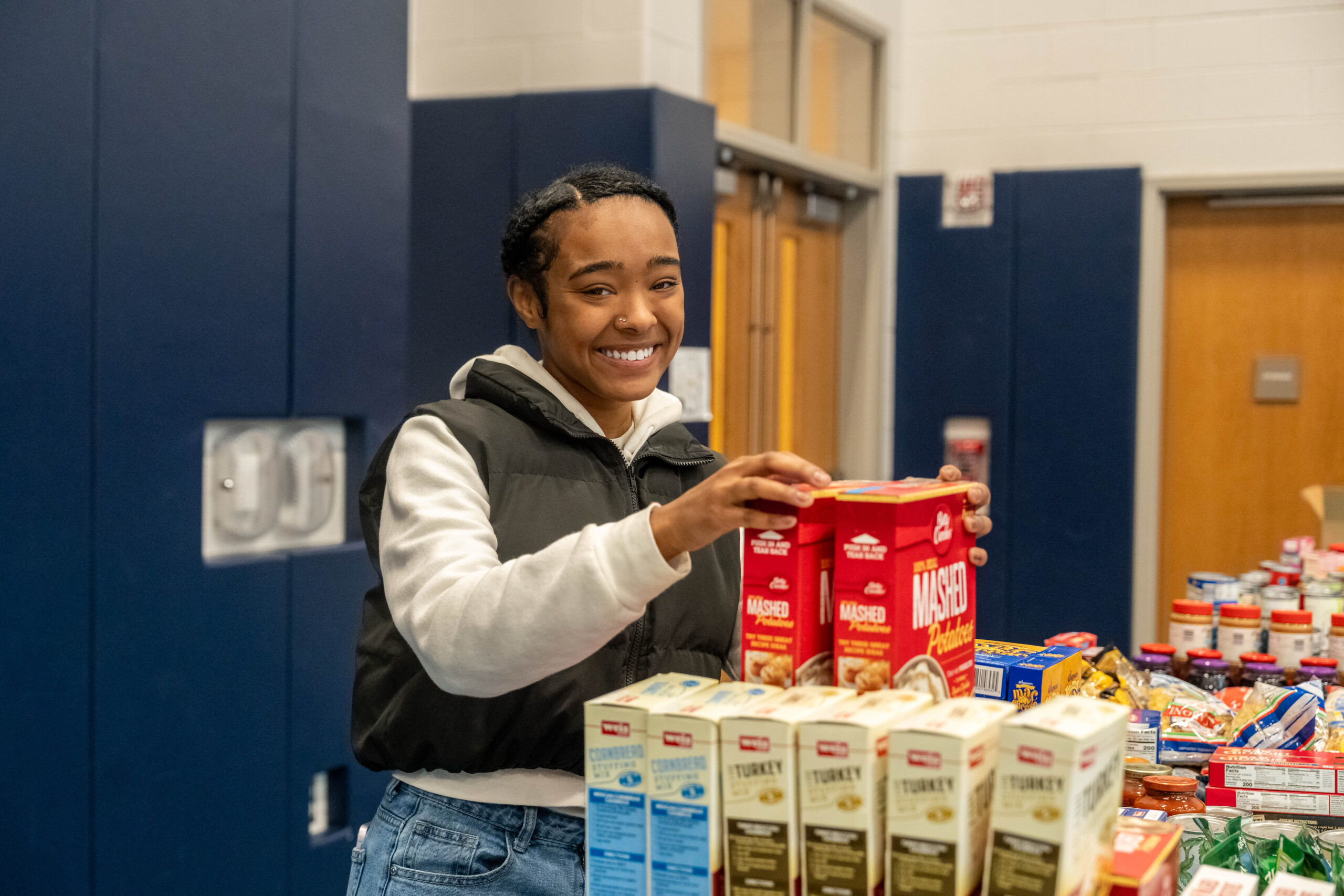 The idea began when Smith-Wade-El social worker Michelle Wilson saw families facing new challenges after federal SNAP benefits were temporarily frozen earlier this fall. With a school break approaching, she worried about students who depend on the stability that school provides. Michelle explained the moment clearly. “When the SNAP benefits froze, I had an idea that I did not want my families to struggle, especially over the holidays. I always worry about kids not having access to things they need.”