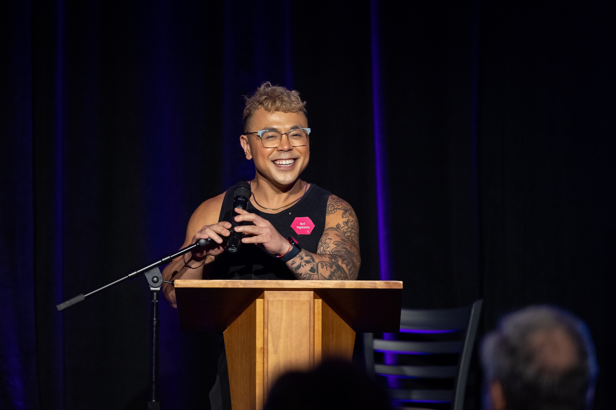 After a dinner that was accompanied by original music from pianist Brad Minnig, an eclectic lineup of local artists highlighted the Ware Center’s mission to create space for all voices, cultures, and genres—including a demonstration of African drumming by Imani Edu-tainers African Dance Company, an original poem crafted for the event by Lancaster City Poet Laureate Dana Kinsey, a series of photos and stories by photographer Bri Nguyen, and musical performances by Julia Kamanda and Ever Sandoval. ASL interpreter Nancy Abreu made each performance more accessible and engaging for those in attendance.