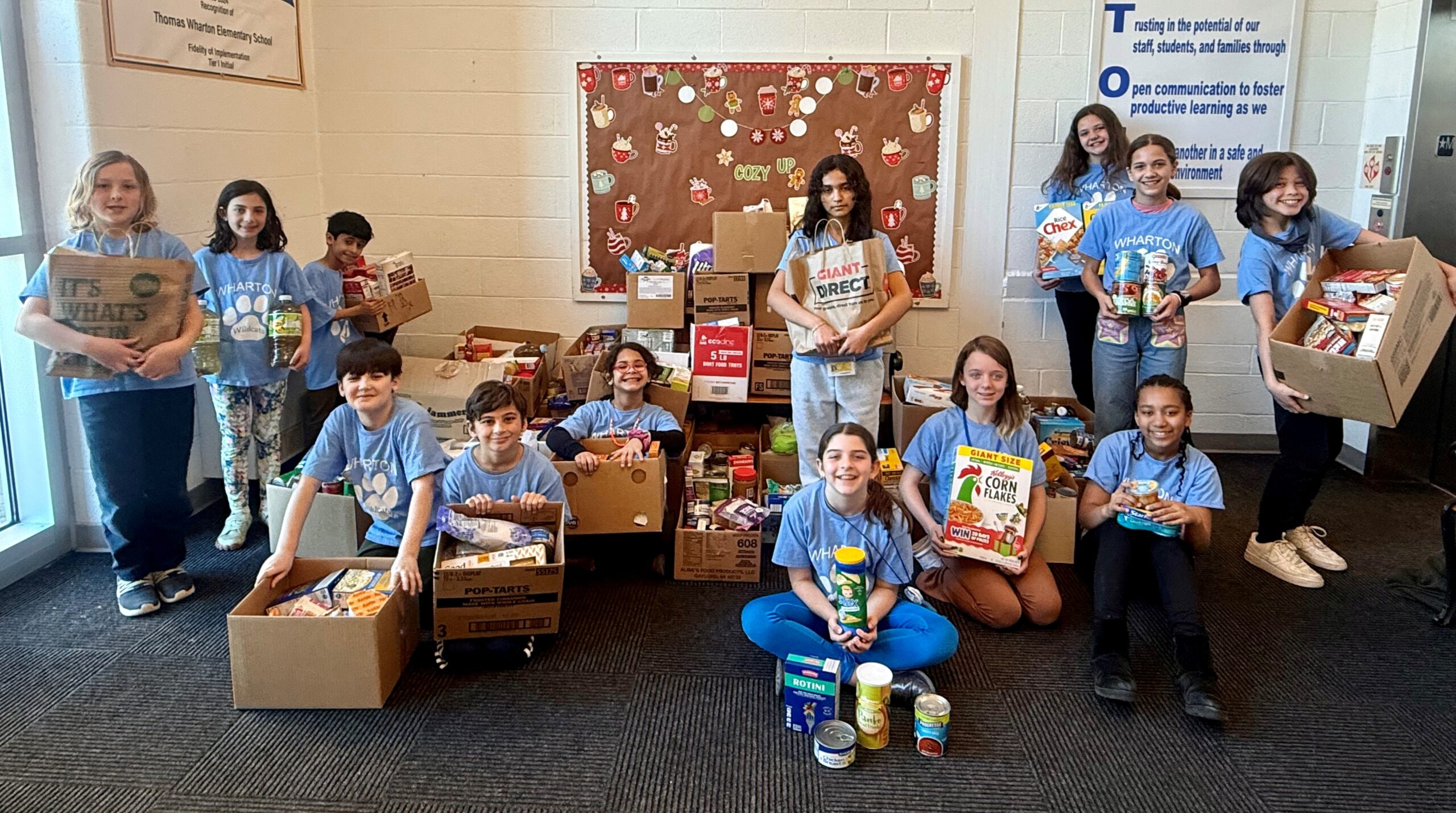 By the end of the week, the lobby at Wharton Elementary School had been transformed. What began as individual items carried in by students and families became something collective. Boxes lined the walls. Bags were stacked with intention. What had once been scattered across classrooms now sat together, representing a shared effort that had grown day by day.