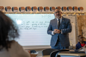 U.S. Secretary of Education Miguel Cardona visited Washington Elementary in March to learn about its full-service community school model and its innovative strategies for supporting student mental health. Secretary Cardona said he applauds Washington’s “dedication to bringing the community together to make students feel welcomed, cared for, and ready to learn.”