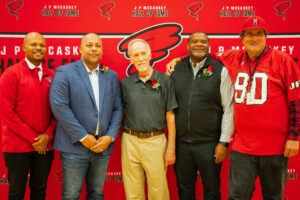 The Lancaster County Sports Hall of Fame inducted three former McCaskey student-athletes—Barbara Barr, Damien Henry, and Kris Wilson—at its 2024 awards banquet and honored McCaskey’s legendary boys basketball coach Pete Horn with its prestigious George Kirchner Memorial Award.