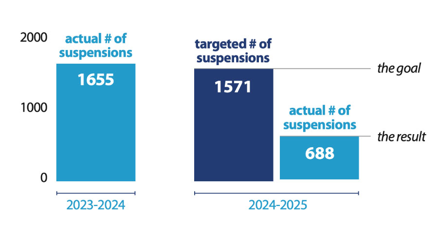 This year SDoL is making efforts to decrease the number of students who receive in- or out-of-school suspensions. This effort has thus far been successful, and we are currently on track to make improvements in comparison to last school year’s rates.